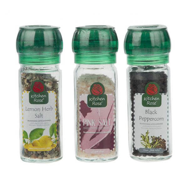 چاشنی لیمو و سبزیجات معطر و نمک صورتی هیمالیا و دانه فلفل سیاه کیچن رز بسته 3 عددی